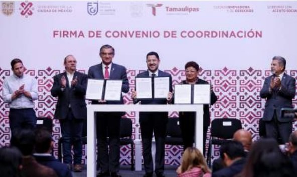 Ciudad de México.- El gobernador de Tamaulipas Américo Villarreal Anaya y autoridades de la Ciudad de México, encabezadas por el jefe de Gobierno, Martí Batres Guadarrama, firmaron un Convenio de Coordinación para la implementación de la plataforma “Denuncia Digital” con el fin de replicar dicho modelo de procuración de justicia en el territorio tamaulipeco.