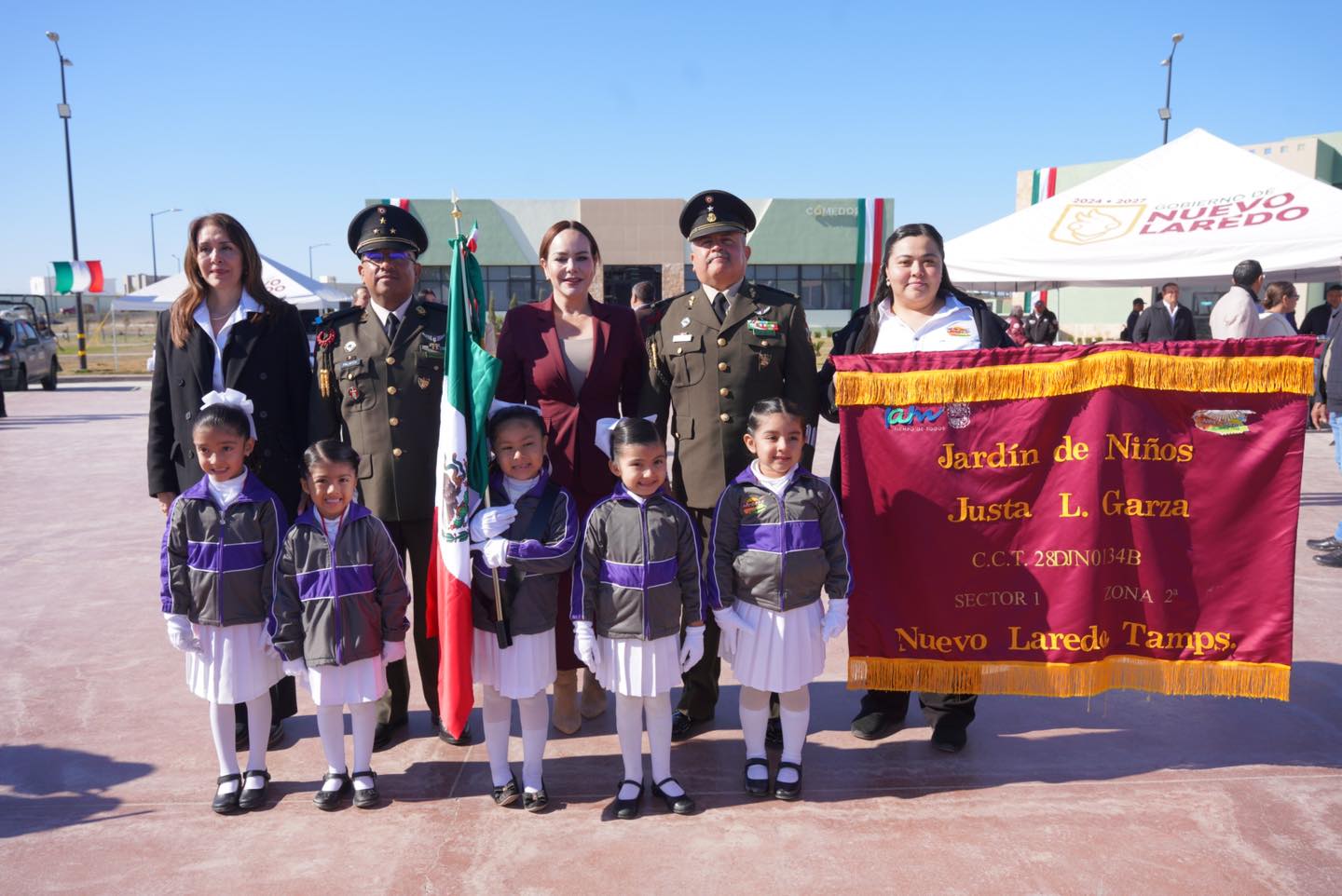 El evento, realizado el 24 de febrero en las instalaciones del cuartel militar, contó con la presencia de la presidenta municipal Carmen Lilia Canturosas Villarreal, representantes del Ejército Mexicano, estudiantes, docentes y padres de familia, quienes presenciaron y participaron en la conmemoración.