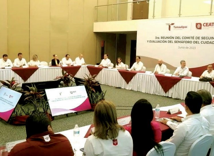 Fue durante la tercera reunión del Comité de Seguimiento y Evaluación del Semáforo del Cuidado del Agua que encabezó Raúl Quiroga Álvarez, responsable de la Secretaría de Recursos Hidráulicos para el Desarrollo Social, donde se hizo la presentación y el análisis para la aprobación de la actualización del Semáforo del Cuidado del Agua aplicable en los municipios de Tamaulipas para el mes de junio.