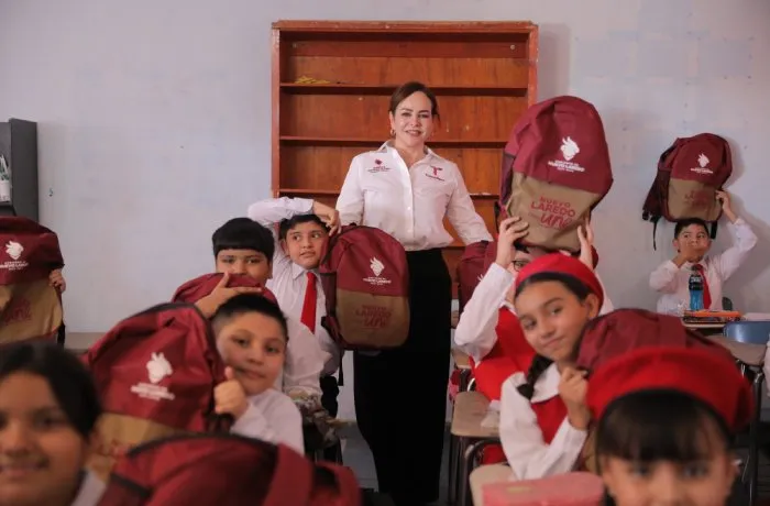 La señora Susana Gómez de Pérez, reconoció la importante inversión que hizo el Gobierno Municipal para que los uniformes y mochilas con útiles escolares lleguen a los estudiantes de Nuevo Laredo.
