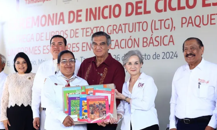 Durante la ceremonia cívica en la Escuela Primaria Francisco Zarco, del ejido San Antonio, municipio de Jaumave, y acompañado por la presidenta del DIF Tamaulipas, doctora María de Villarreal; el secretario general de la Sección 30 del SNTE, Arnulfo Rodríguez Treviño, y Rodrigo Castillo Aguilar, representante de la secretaria de Educación federal Leticia Ramírez Amaya, el gobernador entregó paquetes de útiles, uniformes y libros de texto gratuitos, ahí reiteró que su gobierno estará atento para mejorar las instalaciones educativas a través del ITIFE.