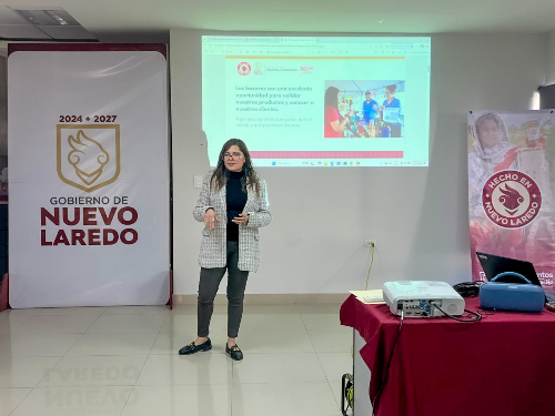 Como parte del programa, también se presentó la iniciativa Hecho en Nuevo Laredo, a cargo de Jessica Itzel Flores Acacio, Coordinadora de Innovación Tecnológica y Transformación Digital, quien invitó a las y los asistentes a sumarse a este programa que ofrece beneficios como el Plan de Acompañamiento, acceso a convocatorias, subsidios, participación en exposiciones y mesas de negociación.