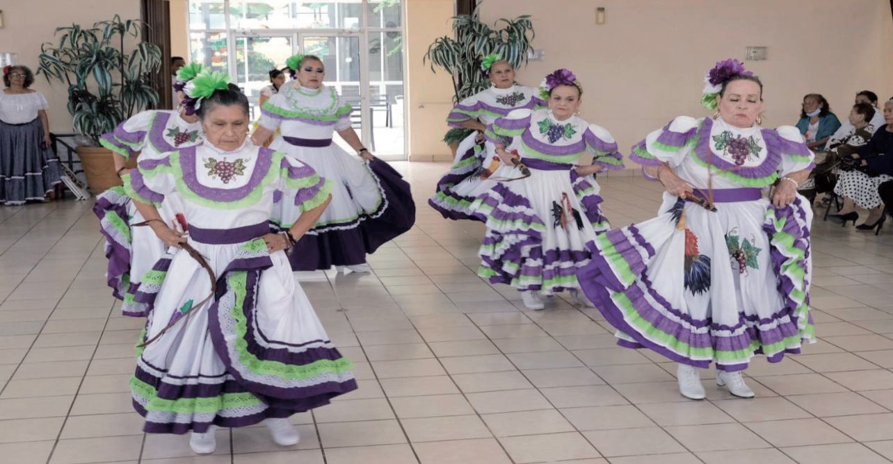 Los abuelitos presentaron más de 10 coreografías de danzas típicas mexicanas, iniciando con el huapango en donde las integrantes lucieron sus vestuarios y dieron muestra de lo aprendido durante sus clases de baile que reciben en Casa Club.