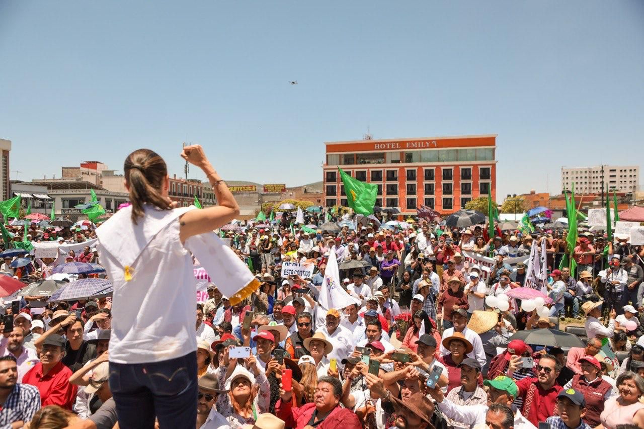 Claudia Sheinbaum frente a simpatizantes y militantes en Pachuca, Hidalgo, destacó la importancia de defender la Cuarta Transformación y garantizar su continuidad. Durante una asamblea informativa, resaltó el trabajo realizado en favor de las mujeres y su participación en la vida pública, enfatizando que es el momento de las mujeres.