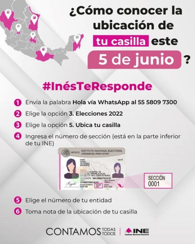 El INe también habilitó un número de WhatsApp en el que la asistente virtual Inés orientará a los ciudadanos para ubicar la casilla en donde les toca votar.