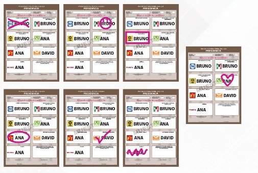 - Voto nulo: Se anula cuando se marcan dos o más recuadros de partidos que no están en coalición, cuando no hay marcas o cuando la boleta está en blanco.