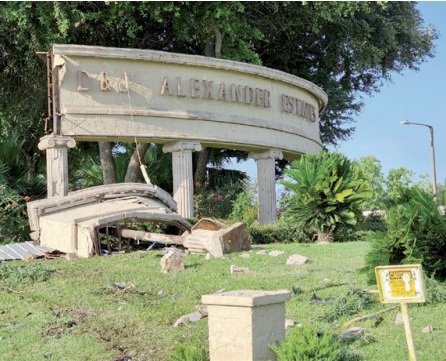 Según testigos, el joven, al parecer en estado de ebriedad, impactó su camioneta Ford F-150 de color gris contra un anuncio de concreto ubicado en el residencial Alexander, derribándolo por completo.
