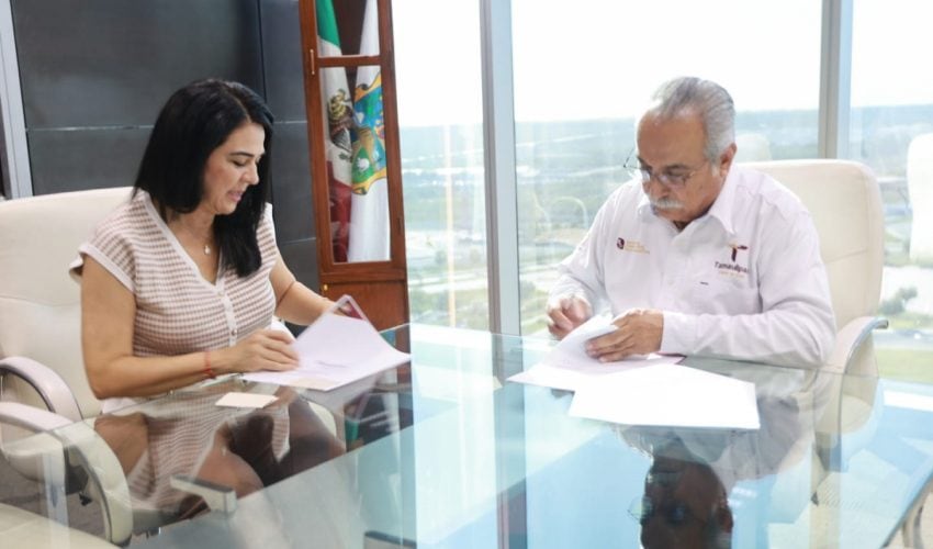 Ciudad Victoria, Tamaulipas.- El secretario de Desarrollo Rural, Pesca y Acuacultura, Antonio Varela Flores, firmó un convenio de colaboración con la alcaldesa del municipio de Tampico, Mónica Villarreal Anaya, con la finalidad de dispersar proteína de pescado a la población vulnerable de esta importante región.