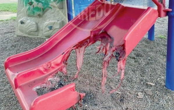 Laredo, Texas. – Nuevamente manos criminales desconocidas causaron serios daños a los juegos infantiles de un parque ubicado a lo largo del arroyo Zacate, ubicado por la calle Bruni, y que fue vandalizado e incendiado ayer aproximadamente a las 6:45 PM, informó el Departamento de Policía.