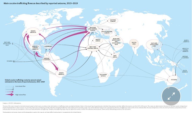 Las autoridades paraguayas advierten de que cada vez existen más indicios de alianzas entre los narcotraficantes de México, Colombia, Europa y los de Brasil, con Paraguay como un territorio “estratégico” para el transporte de cocaína. Además, este país es el mayor productor de marihuana ilegal de América del Sur. La producción mundial de cocaína llegó a un pico de casi 2.000 toneladas en 2020, aunque la ruta aérea no es la opción más frecuente: un 90% de la droga se mueve por mar, según el último informe de la oficina de las Naciones Unidas contra la Droga y el Delito.