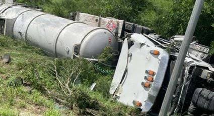 La volcadura se reportó en dirección norte del Camino de las Minas, la policía acordonó el área para evaluar los riesgos, acudieron expertos de bomberos de HazMat.