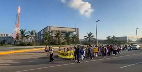 VILLAHERMOSA. – Padres de familia y alumnos del jardín de niños “Agustín Melgar” y de la primaria “Abías Domínguez Alejandro”, que colindan con la refinería Olmeca de Dos Bocas, en el municipio de Paraíso, realizaron este lunes una protesta en una de las entradas del complejo petrolero para exigir la reubicación de los planteles, al considerar que representan un riesgo para la salud de los menores.