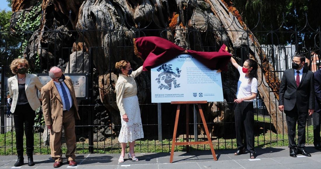 El evento tuvo lugar tarde de este lunes en el sitio en donde se encuentra el viejo ahuehuete, en el que, según la historia, Hernán Cortés, se detuvo a llorar luego de ser derrotado por los mexicas, el 30 de junio de 1520.