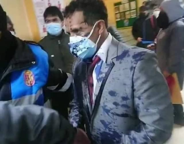 La hija mayor le arrojó un balde de pintura, le reclamó que ella se tuvo que hacer cargo de sus hermanitos cuando su madre falleció, hace cinco años. Ante el altercado, la Policía Nacional de Perú y el Serenazgo tuvo que intervenir para controlar la situación.