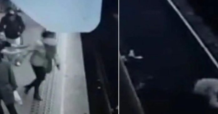 El video muestra a los pasajeros esperando un tren en la estación de metro Rogier en la capital belga el pasado viernes por la noche. Cuando el convoy llega a la estación, un hombre vestido de negro se acerca sigilosamente por detrás a una mujer y le da un gran empujón, lanzándola a las vías justo casi frente al tren en marcha.
