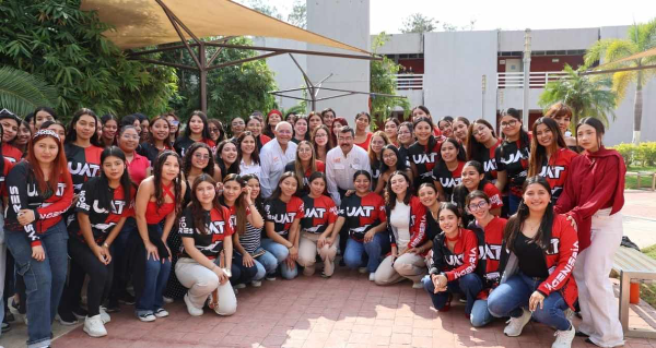 Más adelante dialogó con becarios de los posgrados avalados por SECIHTI y se reunió con la comunidad estudiantil en la Cancha de Usos Múltiples, donde subrayó la importancia del trabajo coordinado entre universidad, gobiernos, sector académico, empresas y sociedad para avanzar con mayor firmeza hacia los objetivos institucionales.