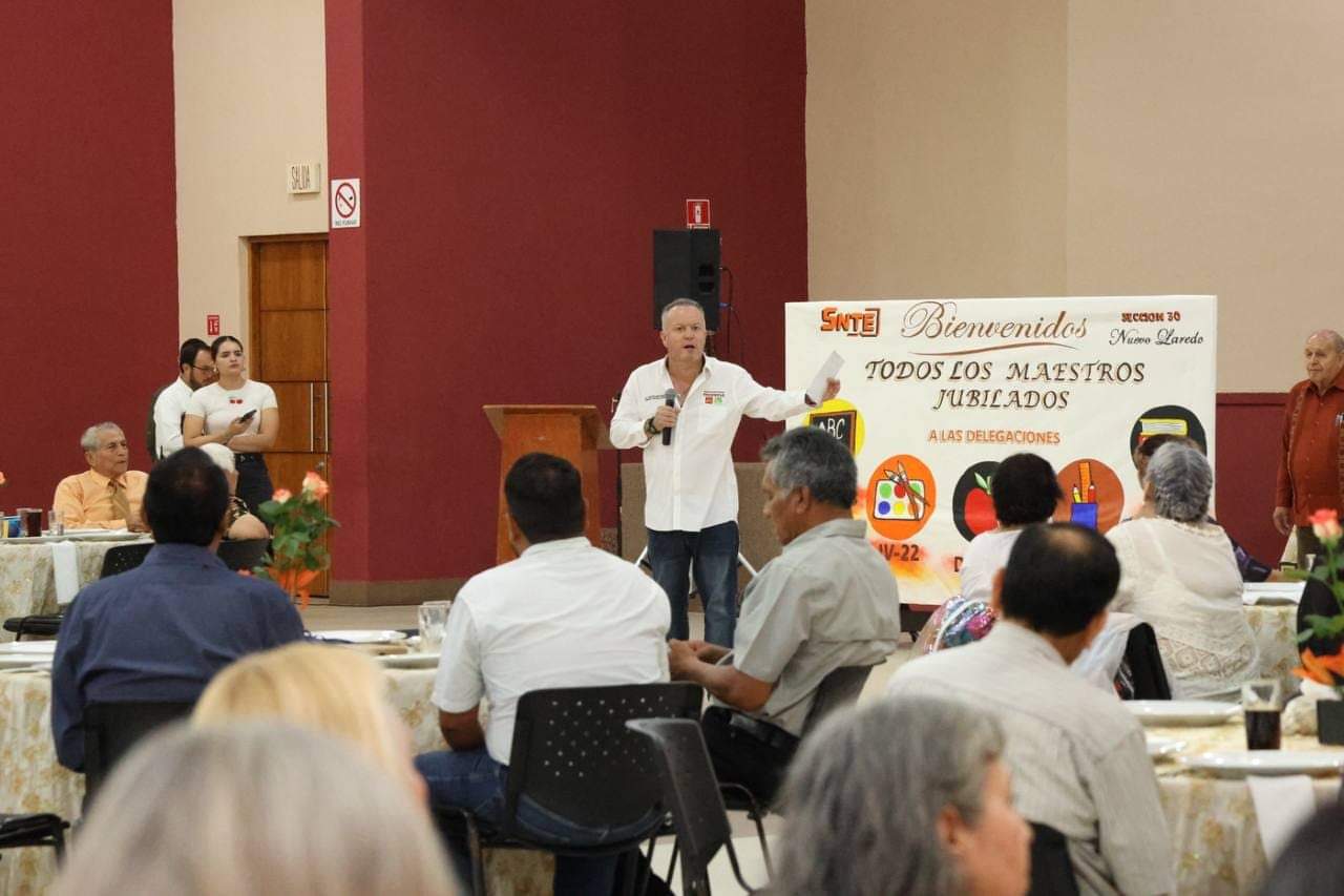 El abanderado de los partidos MORENA, PT y Verde Ecologista, reconoció el trabajo de los maestros jubilados, quienes dedicaron sus vidas a formar ciudadanos de bien que sumen al progreso de Nuevo Laredo.