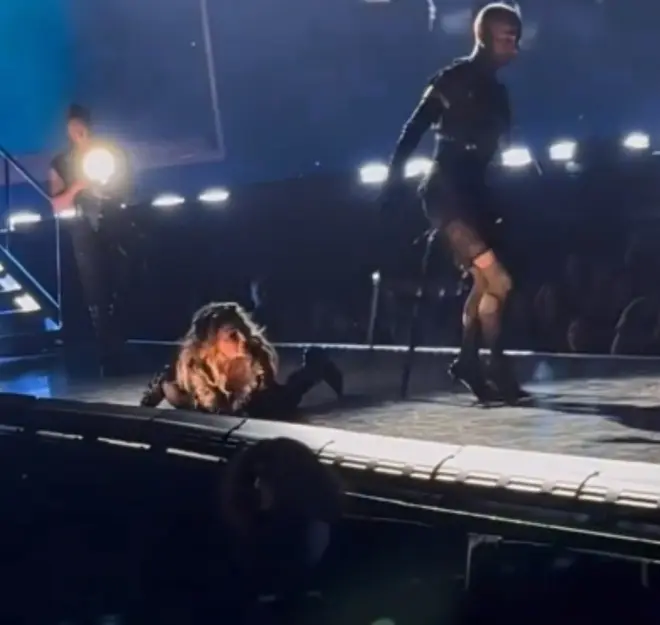 En un video que se difundió en redes sociales, se observa cómo el bailarín, caminando con tacones altos, pierde el equilibrio al doblarse el tacón y cae, llevándose consigo a Madonna. La caída fue sorprendente, pero lo más notable fue la respuesta de la cantante de 65 años.
