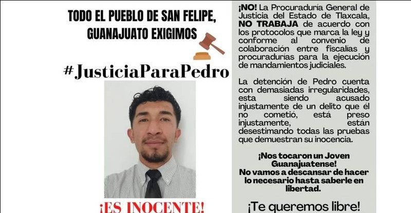Pedro Francisco Rodríguez Vázquez de 24 años de edad originario del municipio de San Felipe, Guanajuato, fue detenido por elementos de la Fiscalía General del Estado de Guanajuato, es acusado sin pruebas de presunto homicidio.