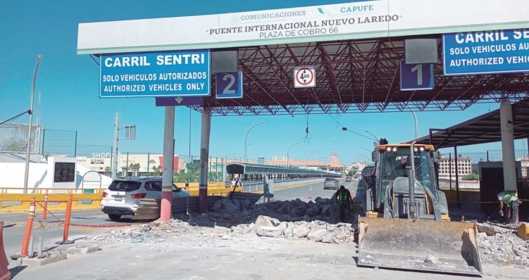 Mencionó que se forman largas filas de usuarios Sentri, principalmente los fines de semana ya que, al derrumbar las casetas de sur a norte, se habilitó solo 1 carril para el cruce hacia Laredo, Texas, y otro carril para el regreso.