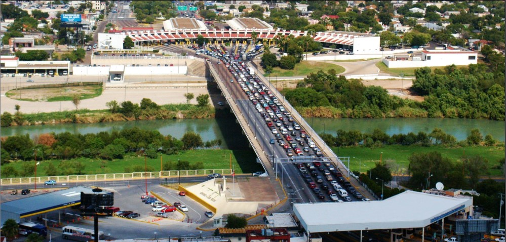 Enfilados como en una carrera de autos se apostaron decenas de vehículos en la vía designada para acceder al puente internacional Juárez-Lincoln.
