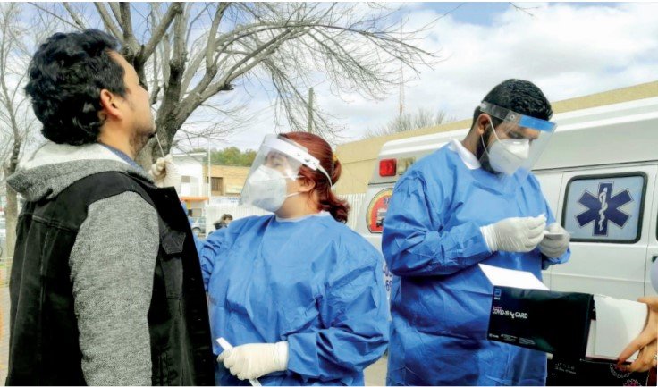 A través de la Asociación Civil Ambulancias al Rescate de Nuevo Laredo ayer se ofrecieron pruebas gratuitas para detección de Covid-19 a familiares de pacientes que esperan fuera de la Unidad COVID con la finalidad de detectar oportunamente casos positivos y evitar que siga aumentando el riesgo de contagio.