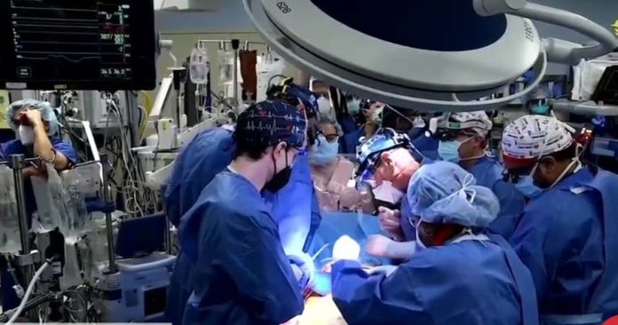 La cirugía se llevó a cabo el viernes y demostró por primera vez que el corazón de un animal puede seguir latiendo en un ser humano sin un rechazo inmediato, explicó en un comunicado.