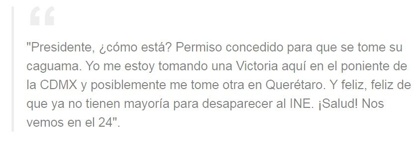 Haciendo un juego de palabras y retomando el video del presidente López Obrador, Ricardo Anaya le dio permiso y comentó que él se está tomando una Victoria en la Ciudad de México y se tomó otra en Querétaro.