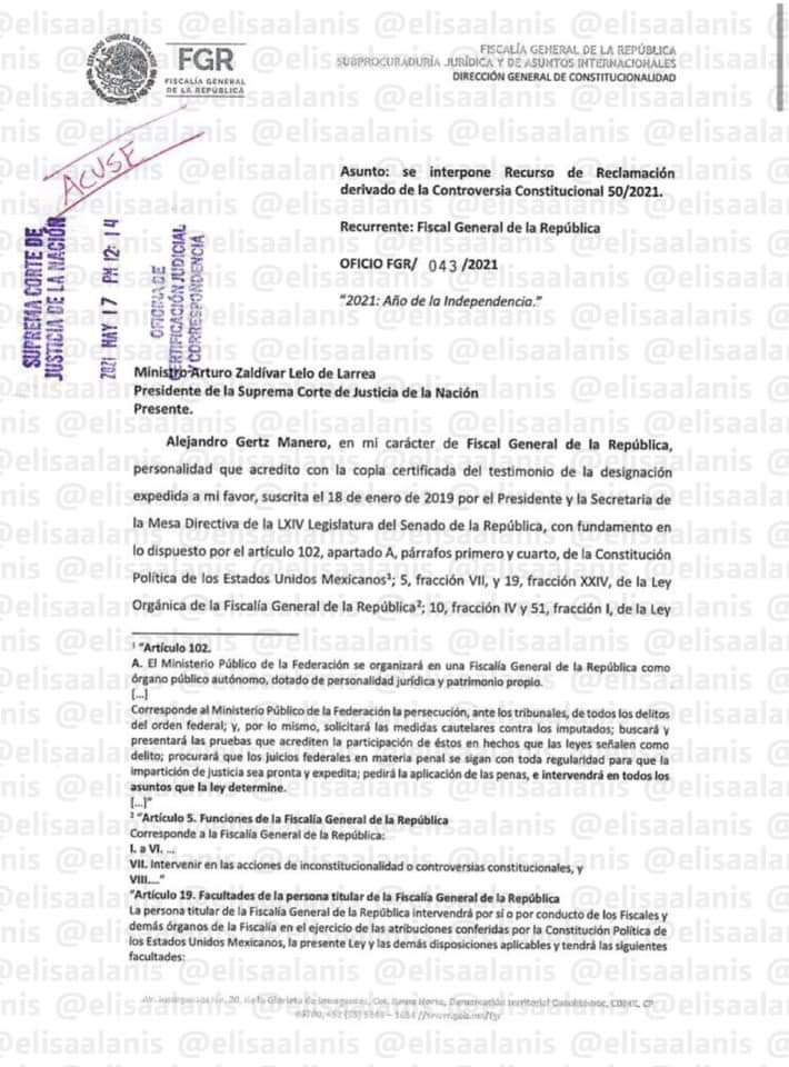 De esta manera la FGR rechaza la decisión del ministro de la Suprema Corte de Justicia de la Nación, SCJN, que desechó el recurso del Congreso de Tamaulipas sobre el tema de desafuero del mandatario.