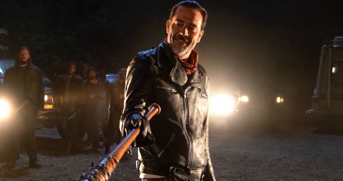 Tras descubrir que Lucille se había suicidado mientras él no estaba, Negan regresa al escondite del grupo, vestido con su característica chaqueta de cuero y un bate de béisbol.