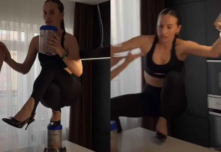 Mariana Barutkina, influencer rusa y madre reciente, sufrió una fractura en la columna tras intentar el reto viral “Stiletto Challenge” desde su mesa de cocina, usando tacones de aguja. El accidente ocurrió apenas ocho semanas después de haber dado a luz.