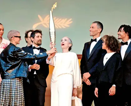 Una llama digna del séptimo arte; antorcha de París 2024 desfila por la alfombra de Cannes.
