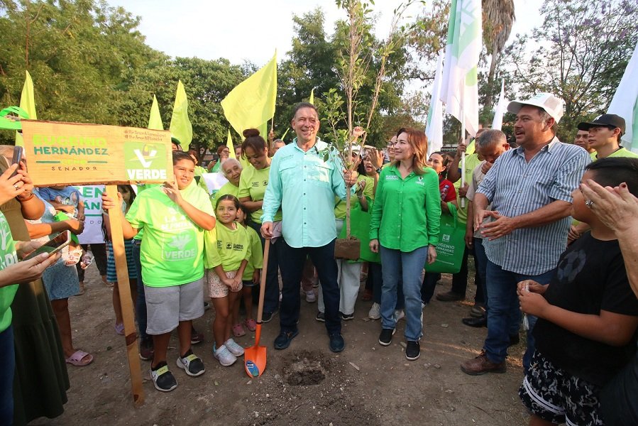 Eugenio, comprometido a plantar un árbol por cada voto recibido, inició esta promesa simbólicamente en la colonia Bertha del Avellano de Cárdenas.