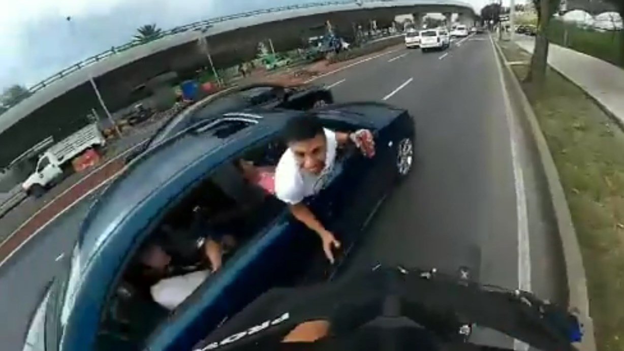 En el vídeo se puede observar como el ciclista circula con normalidad, cuando de la nada de su lado izquierdo un carro se le acerca y un hombre que viajaba de copiloto intentó tirarlo.